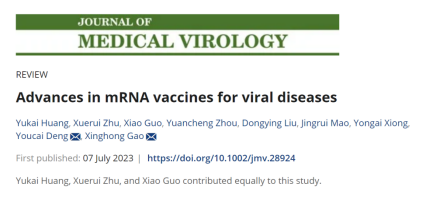 近日,公司贵州省普通高等公司传染病与生物安全特色重点实验室以304永利集团官网入口为第一单位在国际知名期刊《Journal of Medical Virology》(IF:12.7,JCR1区)在线发表了题为“Advances in mRNA vaccines for viral diseases”的综述论文。该论文由公司青年教师高兴红指导的大创员工所完成,2020级临床医学专业本科生黄俞凯、郭骁和公司2021级基础医学专业本科生朱学睿为共同第一作者,高兴红老师为通讯作者。论文链接:https://doi.org/10.1002/jmv.28924