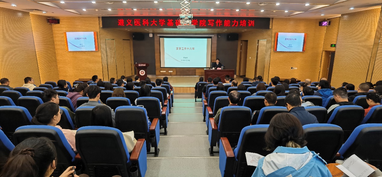 根据基础医公司党委2024年党务工作者培训计划,为深入学习贯彻党的二十届三中全会精神,不断夯实基层党建工作基础,持续提高党务工作者业务水平和履职尽责能力,加强公文写作规范学习,304永利集团特邀请遵义市政协研究室傅臣刚副主任于10月24日上午在图书馆报告厅开展“文字工作十八样”写作能力专题培训会,公司党务工作者及部分师生参加了此次培训。