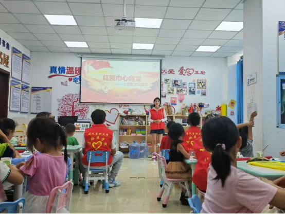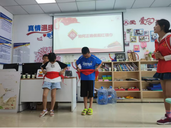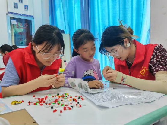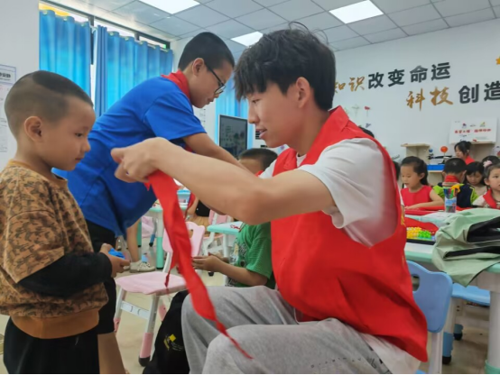 活动中,志愿者向小朋友们宣讲了包括防溺水、防中暑、防雷击、防烫伤、防食物中毒在内的安全防控小知识,提醒孩子们保护自身安全;进行了红领巾心向党——少先队知识宣讲,告诉小朋友们少先队的知识以及红领巾的正确佩戴方式、教唱《中国少先队队歌》;宣讲结束后,开展了用粘土捏塑心中所想、色彩填涂、拼中国地图、绕口令、常识知识竞赛答题等丰富的游戏活动,志愿者们化身小朋友的知心朋友、小老师带他们动手动脑,培养小朋友爱国情怀、动手能力以及想象力。