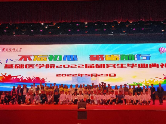 在毕业典礼环节,2019级细胞生物学研究生卢雪代表2022届毕业生分享收获与感悟,表达了对母校、对恩师的不舍与感念;导师代表与在校生代表为公司全体毕业研究生送上了精心准备的礼物;龙艺书记希望即将毕业的学子铭记老师的教诲、感恩公司的培养、感谢同学的陪伴,珍惜三年前与遵医的相遇、三年与遵医的相知,一辈子与遵医的相恋、相爱,并祝同学们毕业快乐!前程似锦!