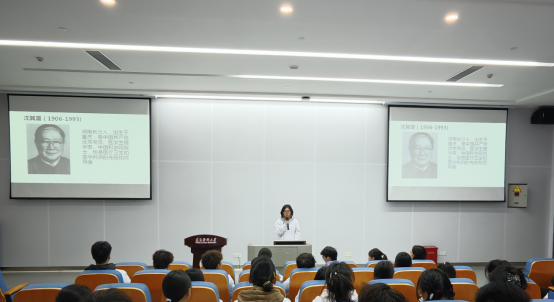 在图书馆一楼二号报告厅,员工团干部为同学们深情讲述中国科公司院士吴汝康、中国微生态学之父魏曦院士、医员工理学家沈其震、革命征程上的医者王布君、历年遵义医公司经理陈荣殿、华夏生理师吴襄、中国药理学奠基人张毅等遵医先贤在艰苦岁月中坚持医学研究、救死扶伤、培育医学人才的事迹。一个个鲜活的故事,让同学们深感先贤们为医学事业奉献的伟大精神。员工代表结合自身学习生活发表感悟,表达对遵医先贤的敬仰之情,立志传承遵医精神、努力学习专业知识、培养高尚的医德、为医学事业奋斗的坚定决心。