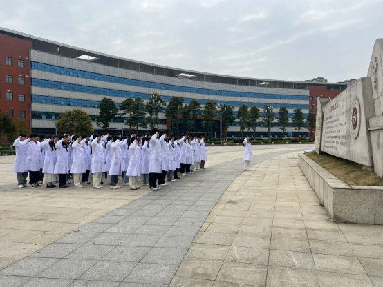 在“医员工誓言”石碑前,“健康所系,性命相托……”一句句铿锵有力的医员工誓词,在校园上空回荡,表达同学们对医学事业的庄严承诺和为守护人民健康而努力的坚定信念。