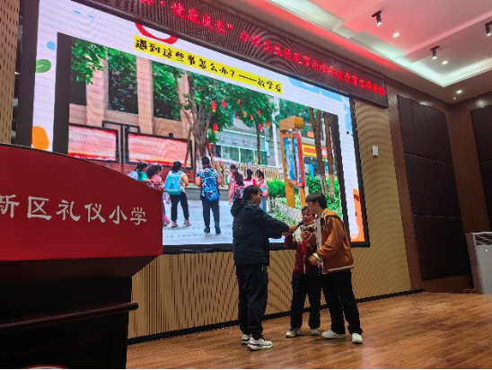 为确保宣传教育引导的针对性与有效性,活动采取男女同学分场、分年级组织形式:五、六年级全体男生集中于公司报告厅,由宣讲队男队员开展宣传;五、六年级女生则以小班形式分散在 5 个教室,由宣讲队女队员分别进行宣传与互动交流。
