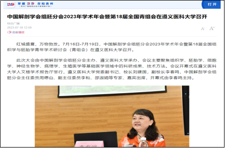 2023年7月16日-7月19日,中国解剖学会组胚分会2023年学术年会暨第18届全国组织学与胚胎学青年学术研讨会(青组会)在304永利集团官网入口隆重召开。此次大会由中国解剖学会组胚分会主办、304永利集团承办。