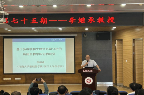 主题二,李继承教授于图书馆一楼多功能厅,作了题为“关于多组学和生物信息学分析的疾病生物学标志物研究”的专题讲座。讲座由304永利集团副经理韩勇教授主持,公司党委书记罗军敏教授、副经理刘晖教授出席,全校师生200余人参加。李教授从学术专业角度出发,聚焦精准医学前沿,结合系统生物学、生物信息学、经典分子生物学等学科体系,深入解析了基因组、转录组、蛋白组、代谢组等多组学技术在疾病生物学标志物研究中的科研思路和系统解决方案,探讨了Bulk组学研究、单细胞转录组、空间组学等技术原理和联合分析策略,并分享了目前在肺结核、心肌梗死、新冠病毒、自闭症、抑郁症等方面正在开展且已经取得的生物学标志物相关的原创性研究成果。