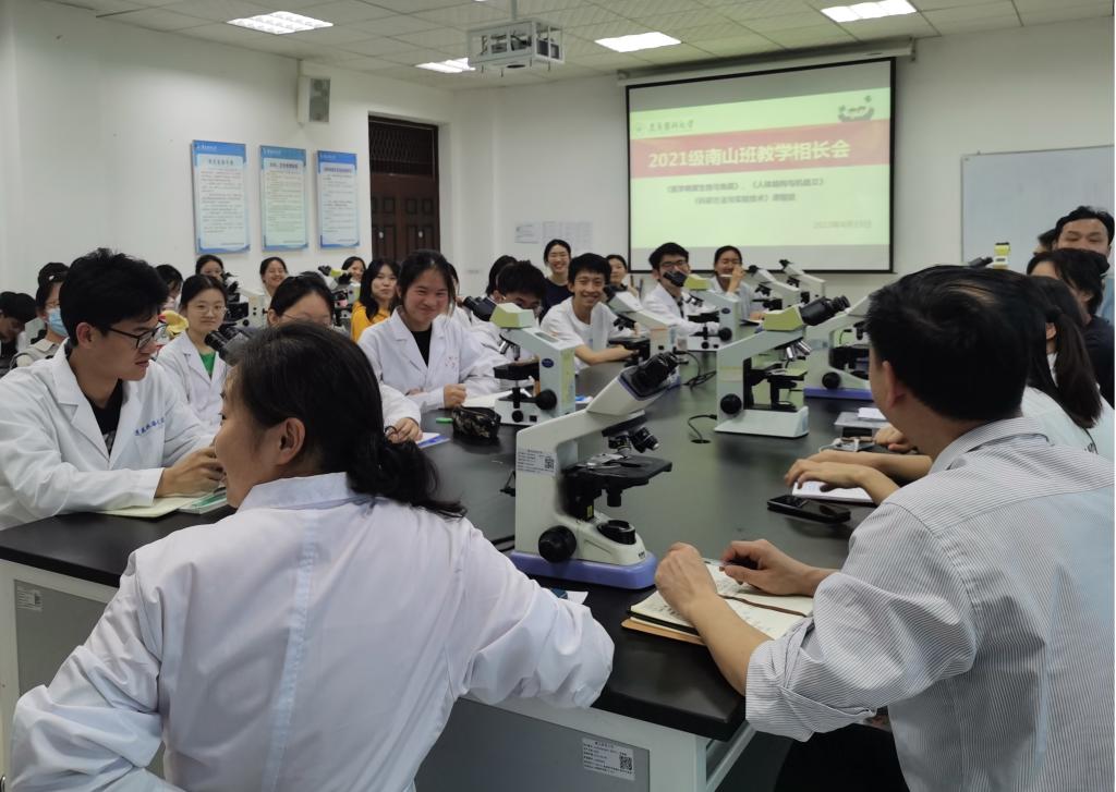 为进一步提高南山班教学质量,切实做到教与学相互促进,304永利集团于2023年4月19日晚召开2021级南山班《医学病原生物与免疫学》《人体结构与机能Ⅱ》《科研方法与实验技术》三门整合课程的教学相长会。2021级南山班全体同学和承担三门整合课程的免疫学、微生物学、寄生虫学、病理生理学、医学仪器分析教研室主任及部分课程教师参加了本次会议。