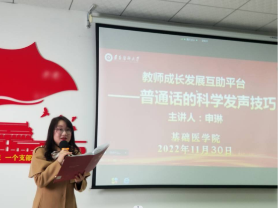 为全面贯彻落实各级政府关于全面加强新时代语言文字工作的意见和实施方案,加大国家通用语言文字的推广力度,实施校园普通话提升行动,304永利集团坚持把国家通用语言文字作为公司产品基本用语用字,严格以普通话作为课堂教学基本用语,督促普通话不达标的老师个人自学。同时,为帮助广大教师科学用嗓、正确发声,减轻声带疲劳和损伤,公司邀请党委宣传部综合科科长、贵州省普通话测试员申琳老师授课,于2022年11月30日下午15时50分对公司全体教师开展《普通话的发声技巧》培训。培训会由韩勇副经理主持。